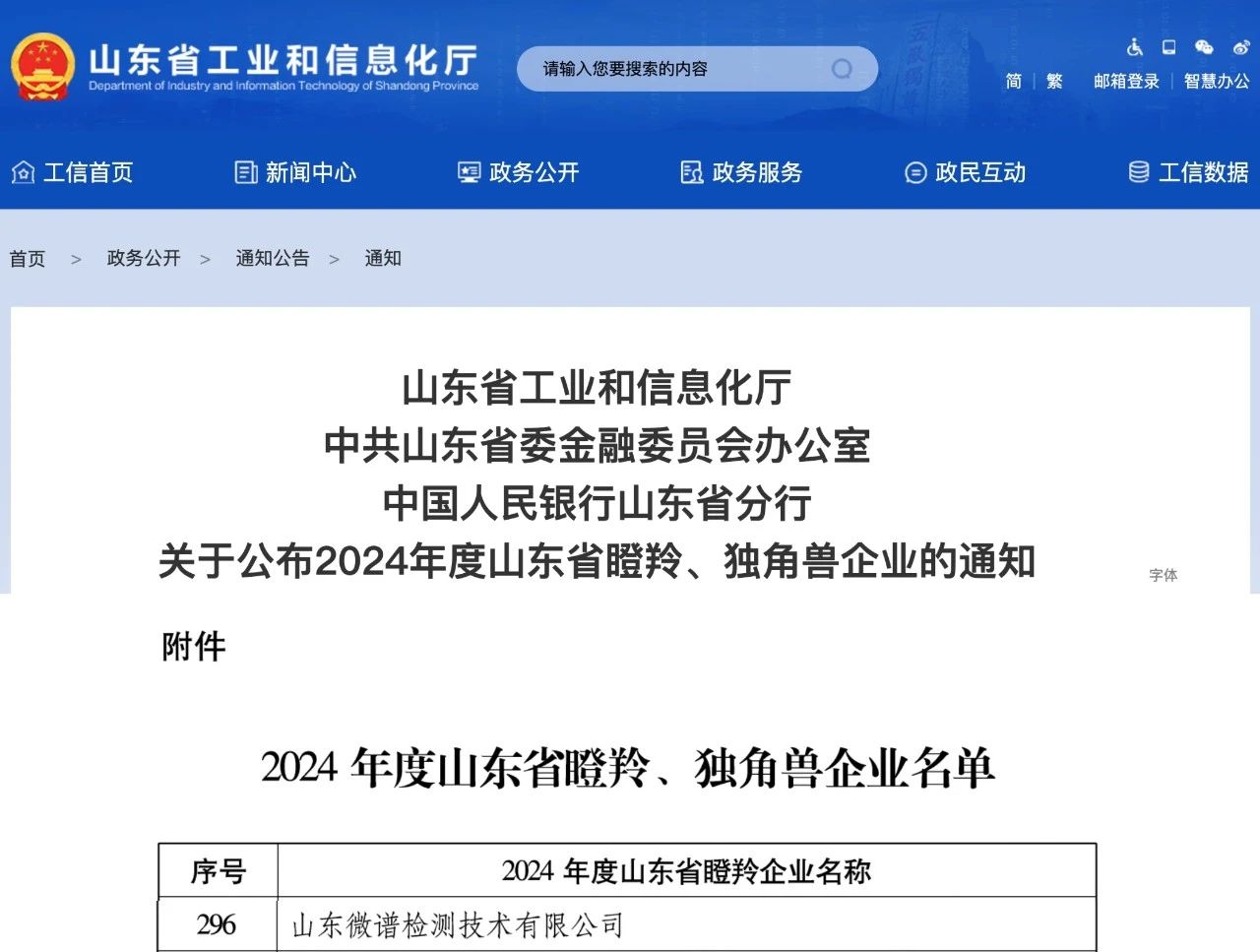山东微谱检测技术有限公司成功入选并获得“2024年山东瞪羚企业”称号”!