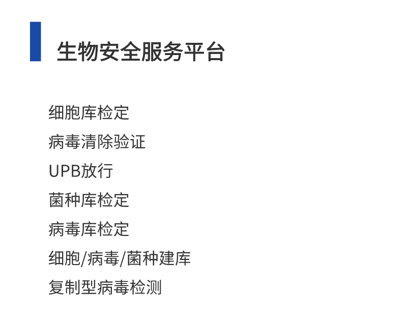 目前,微谱生物安全研究平台服务能力涵盖细胞库检定、病毒清除验证、UPB放行、菌种库检定、病毒库检定、细胞/病毒/菌种建库及复制型病毒检测等。