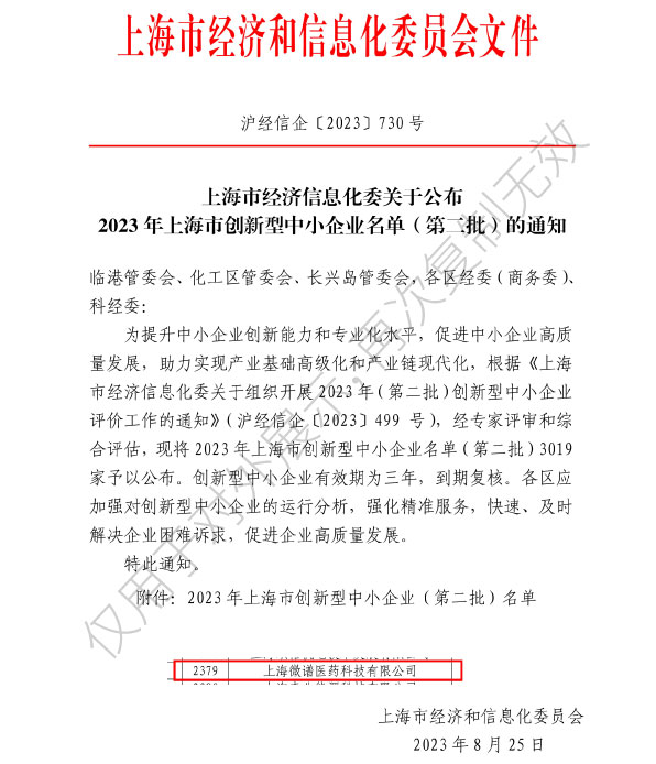 2024年上海市创新型中小企业第二批-上海微谱医药科技